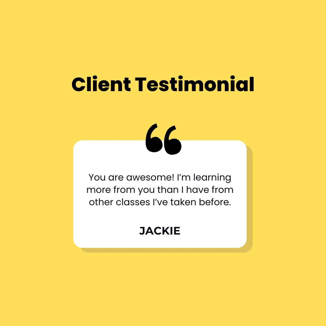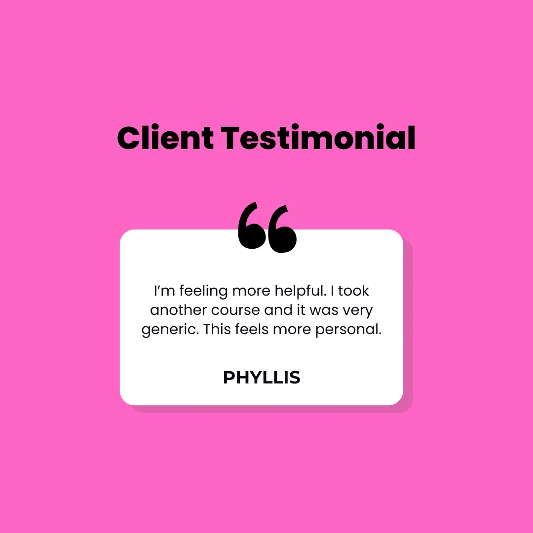 I’m so happy I found this class. It gave me the clarity and confidence I was looking for.