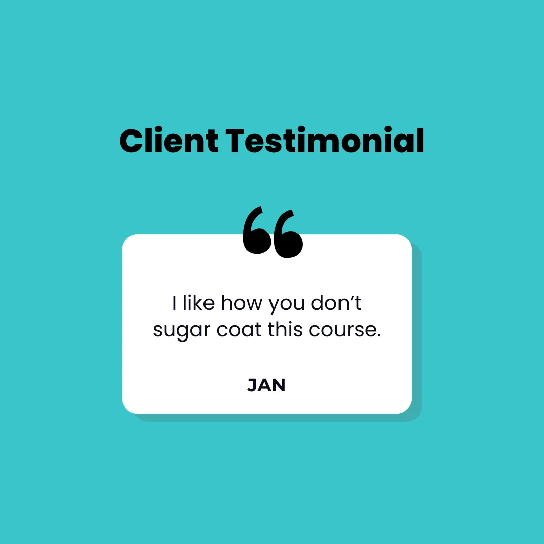 I liked that you don’t sugarcoat things. You tell it like it is, but you make it easy to understand. I feel way more confident now.